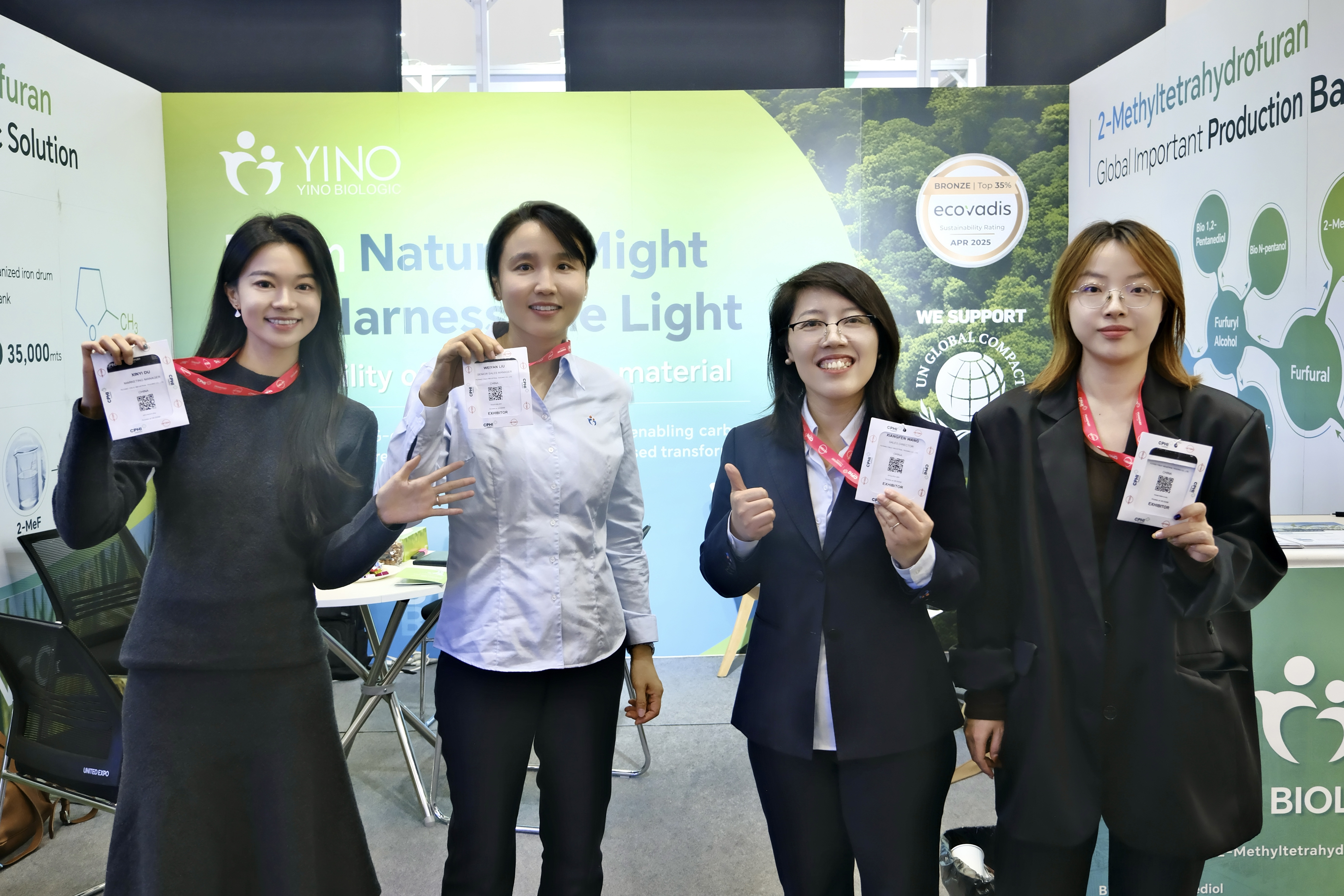展會(huì)期間,YINO Biologic 展臺(tái)吸引了來(lái)自歐洲、印度、北美及亞洲的眾多制藥企業(yè)代表,成為現(xiàn)場(chǎng)關(guān)注的焦點(diǎn)。多家國(guó)際制藥公司與 API 供應(yīng)商對(duì)公司在綠色溶劑替代方案、碳減排路徑及合規(guī)標(biāo)準(zhǔn)等方面的實(shí)踐表示高度認(rèn)可,并就未來(lái)合作進(jìn)行了深入交流。多位合作伙伴認(rèn)為,YINO 的非糧生物基解決方案為制藥企業(yè)在可持續(xù)研發(fā)與生產(chǎn)優(yōu)化方面提供了切實(shí)可行的新路徑,助力全球客戶(hù)共同構(gòu)建低碳高效的綠色供應(yīng)鏈。